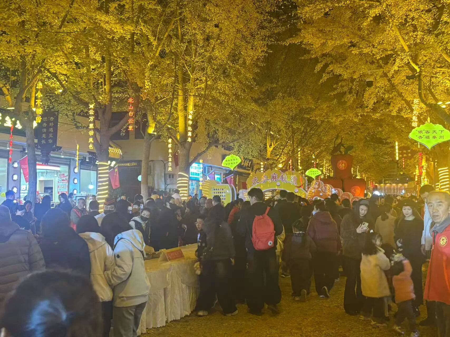 活动始终坚持全民参与、全民共享的理念。集结健身操、街舞、太极、武术等方阵,将体育融入文旅活动,实现“体育+文旅”,将“黄金大道”变为全民健身的活力秀场,展现了“活力秦州”篇章健康秦州的风采。本届活动以“银”客天下 “杏”福秦州为主题,以银杏叶为媒,传递“迎客天下 幸福秦州”的秦州文旅品牌,活动中全场齐唱《我和我的祖国》将文化自信与家国情怀推向高潮,形成了强烈的集体情感共鸣。此外,精心设置的心愿景观墙、银杏主题打卡点等互动装置,鼓励游客自发创作与分享,共同塑造和传播了秦州区“黄金大道”的独特文旅IP形象。