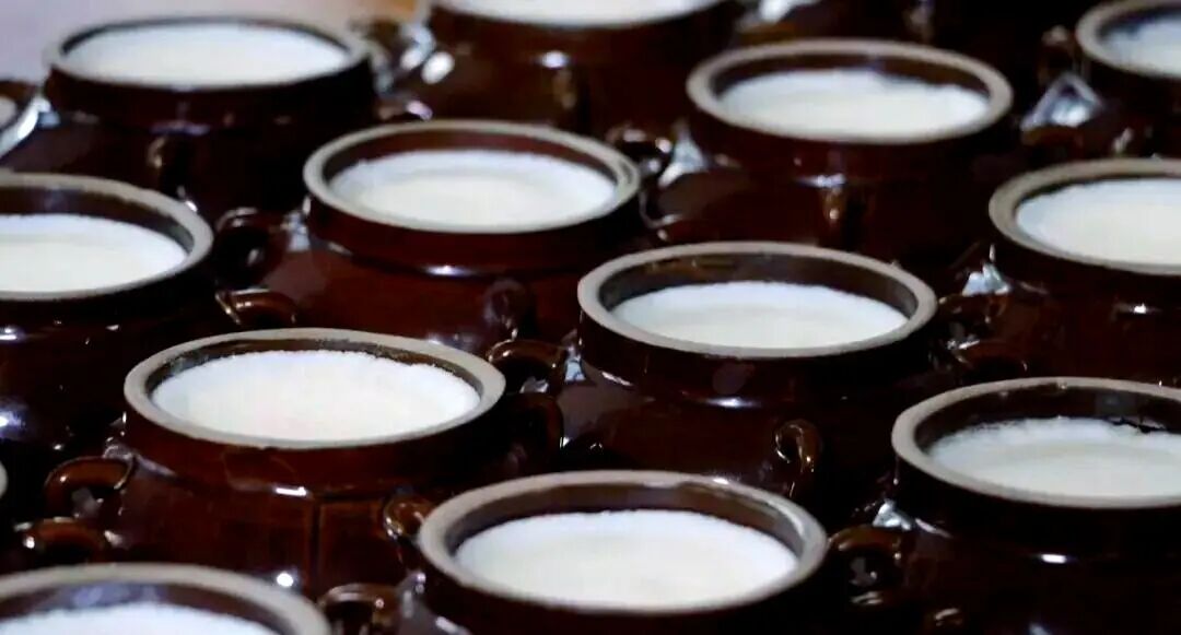 肉块逐渐堆满了缸口,不能放得太满,不然会影响之后的操作。中国有句俗话说:“倒茶之道七分满,空留三分是人情”,七分确实是一个合理的比例,将炸过肉块的油倒入缸中,肉完全浸透,一定要封到顶。不然在漫长的时光里,微生物会带来腐坏灰败的口感,坏了一缸的肉,没人能负得起这么重的责任。