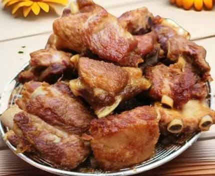 猪肉切成一两斤的肉块,在热水中“汆煮”片刻,直接投入备好的热油锅里,肉块慢慢变得焦黄,甚至脂肪已经在热油的作用下开始慢慢溢出。锅里的植物油和动物油开始亲密无间,大约6成熟时捞出来裹调料,每一个主妇都有自己的独门技术,但花椒和大料是必需品。