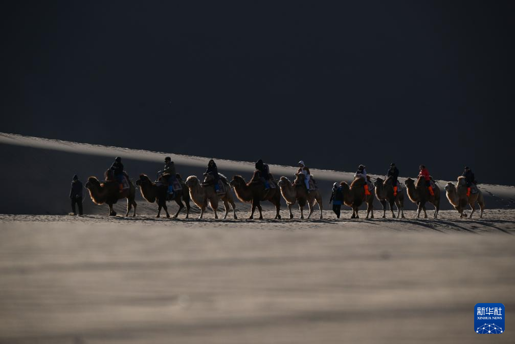 12月1日,游客在甘肃省敦煌市鸣沙山月牙泉景区游览。新华社发(张晓亮 摄)