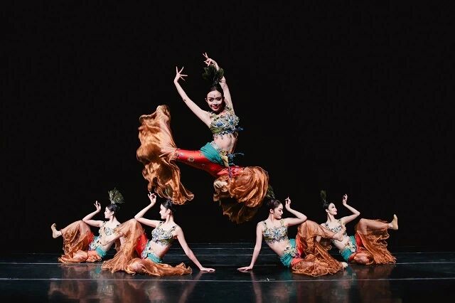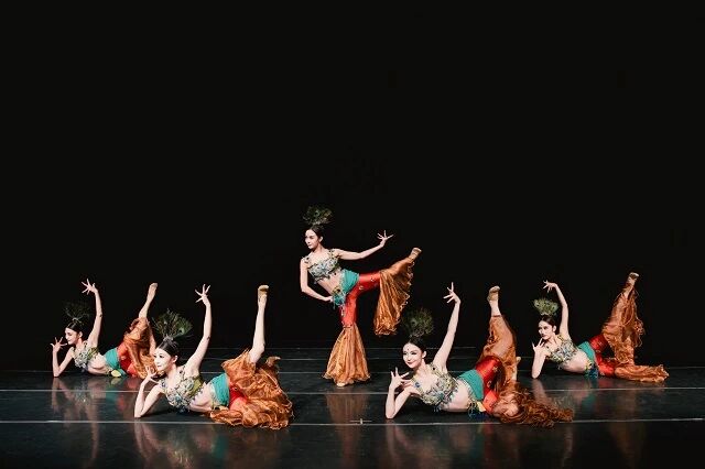 《唐·胡旋舞》以唐代自西域传入的乐舞为灵感,糅合连续高速旋转技巧与中国古典舞表达,舞者踏鼓点飞旋如风似雪,兼具矫健与柔美,彰显盛唐奔放包容与胡汉交融,是敦煌壁画经典意象之一,更是丝路精神“和而不同”的生动体现。