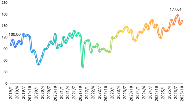 2019年—2025年10月甘肃乡村旅游消费热度总指数走势(点)