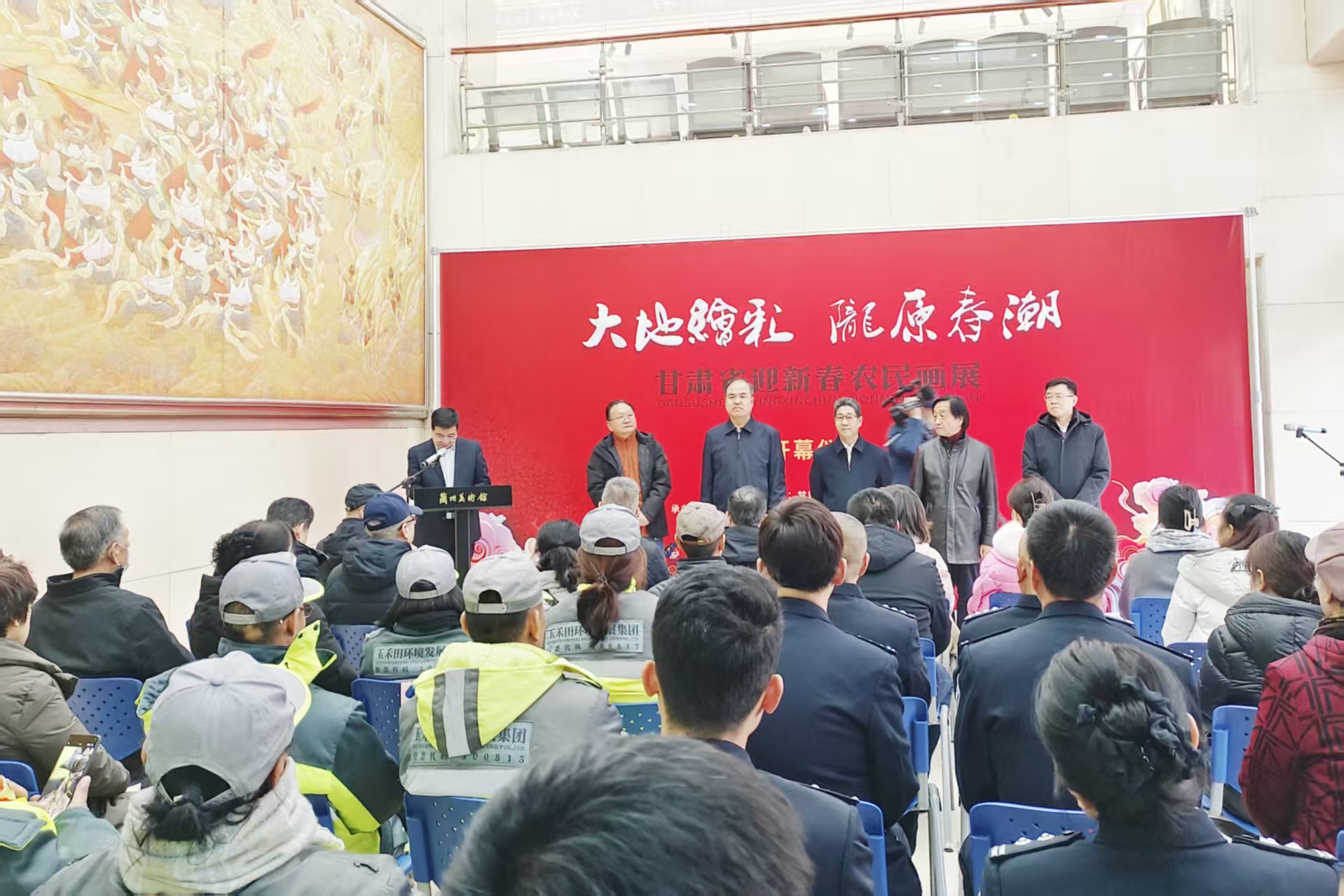 12月30日下午,由甘肃省文化和旅游厅主办,甘肃省美术家协会、甘肃画院、甘肃省文化馆、兰州画院承办的“大地绘彩 陇原春潮”迎新春农民画展在兰州美术馆拉开帷幕。省委宣传部副部长、省文旅厅党组书记、厅长何效祖出席活动并宣布开展;甘肃省美术家协会主席、中国美术家协会理事王骁勇致辞;省文旅厅党组成员、副厅长史云海讲话;兰州市政协副主席高永健等领导嘉宾共同出席。