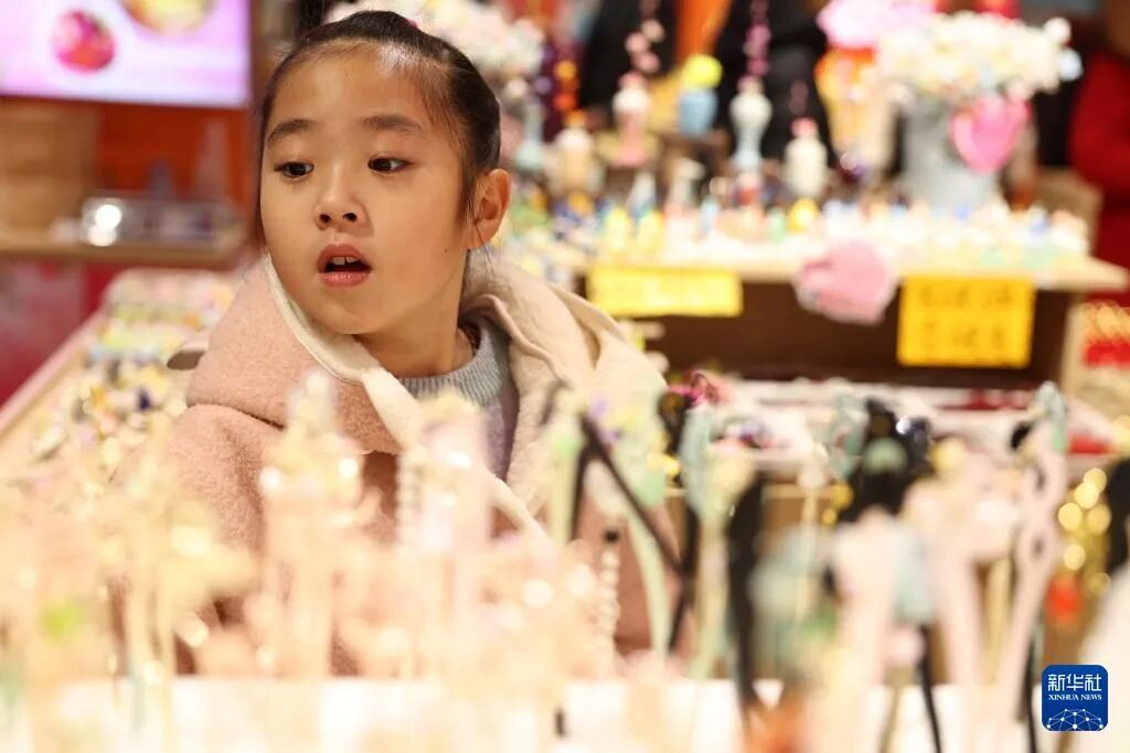 小朋友在兰州市七里河区兰州老街一家店里挑选饰品(1月6日摄)。新华社记者 陈斌 摄