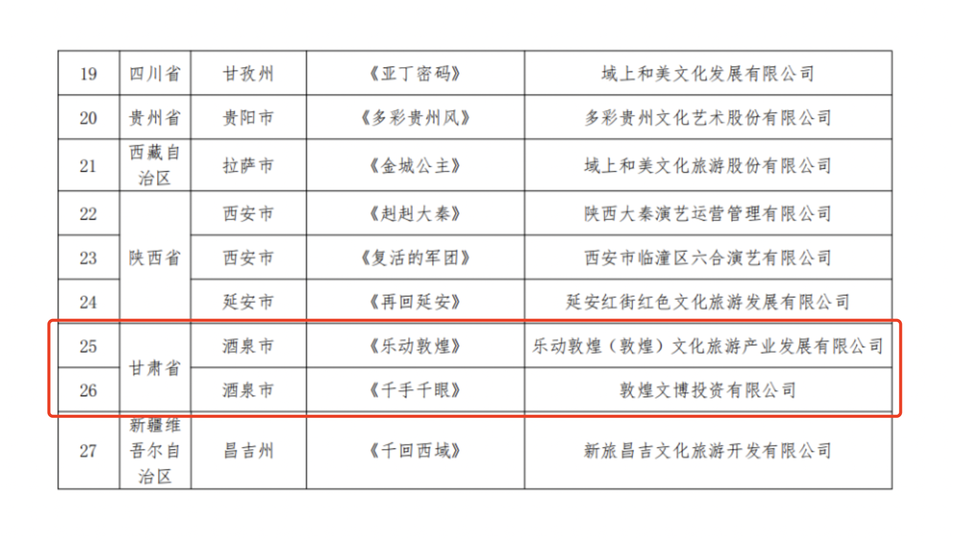 第二批全国旅游演艺精品名录公布!甘肃两项作品入选