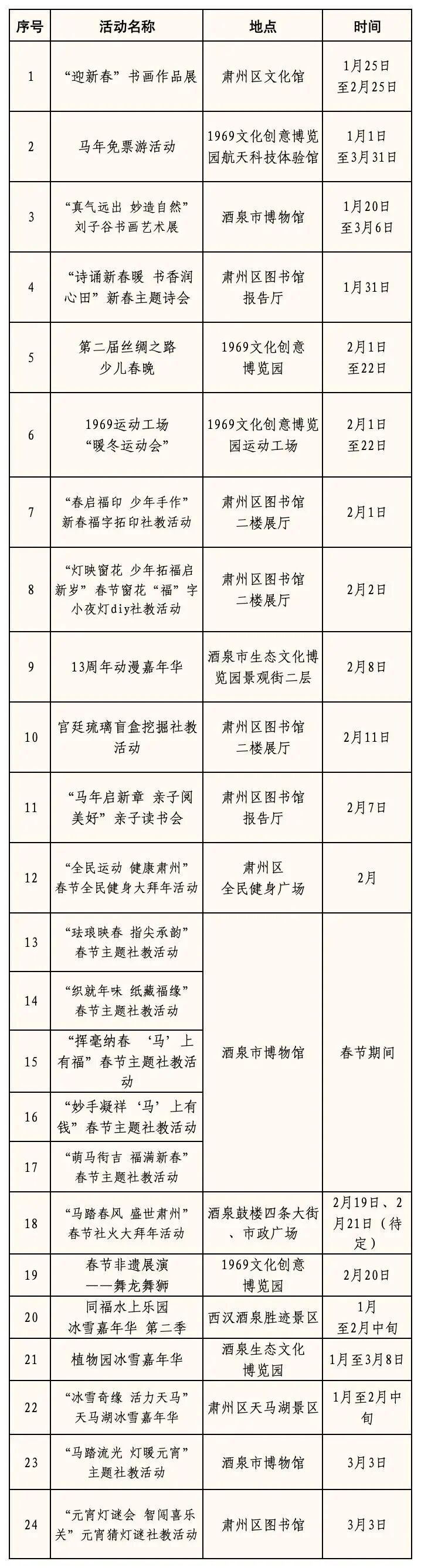 来酒泉一起过大年!2026马年文体旅活动安排来了