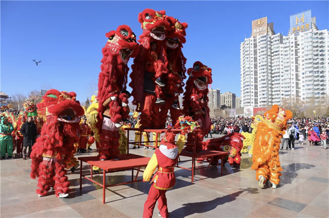 内容:热闹的社火队伍沿街巡游,与市民共庆新春。