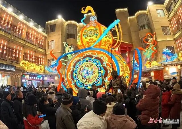 王斌银 周玉玲/摄 2026敦煌灯会持续点亮敦煌夜市 吸引数万名市民、游客 共赴这场丝路文化盛宴 飞天飘袂、反弹琵琶、九色鹿奔跃等 经典壁画元素与雄浑的丝路文化 浓郁的西域风情巧妙融合 一盏盏花灯流光溢彩 让尘封的壁画故事 在灯火摇曳中焕发出新的生机