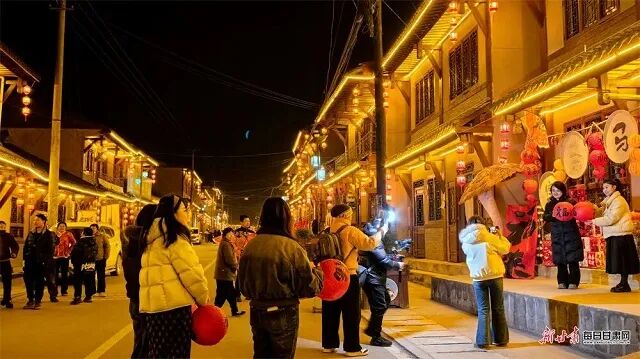 燕宏瑞 马明月/摄 随着一串串红灯笼在徽县 榆树乡古街的檐角次第亮起 静卧于茶马古道旁的老街 仿佛被温暖的光影唤醒 流淌出金色的光彩 浓浓的年味随灯火弥漫 吸引众多村民与游客驻足流连 龙马精神处,巧艺寄春风 巧手翻飞,寓意绵长 “马”的形象化作了 窗上的身影、手中的玩偶 人们正将“龙马精神”的昂扬祝福 融入每一件手工中 让春风与祥瑞,驻足千家万户