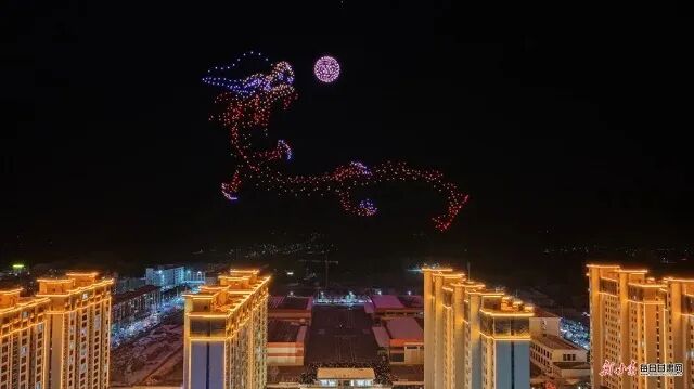 邓永德 苏久永 喇勇/摄 看!民乐县大型无人机灯光秀 献上了一场震撼的视听盛宴 夜幕初垂,漫天烟花骤然绽放 将民乐大地映照得暖意融融 千架无人机腾空而起 在夜空中编织出一幅幅绚丽画卷 展现了日新月异的城市风貌 更寄托了人民对美好生活的向往