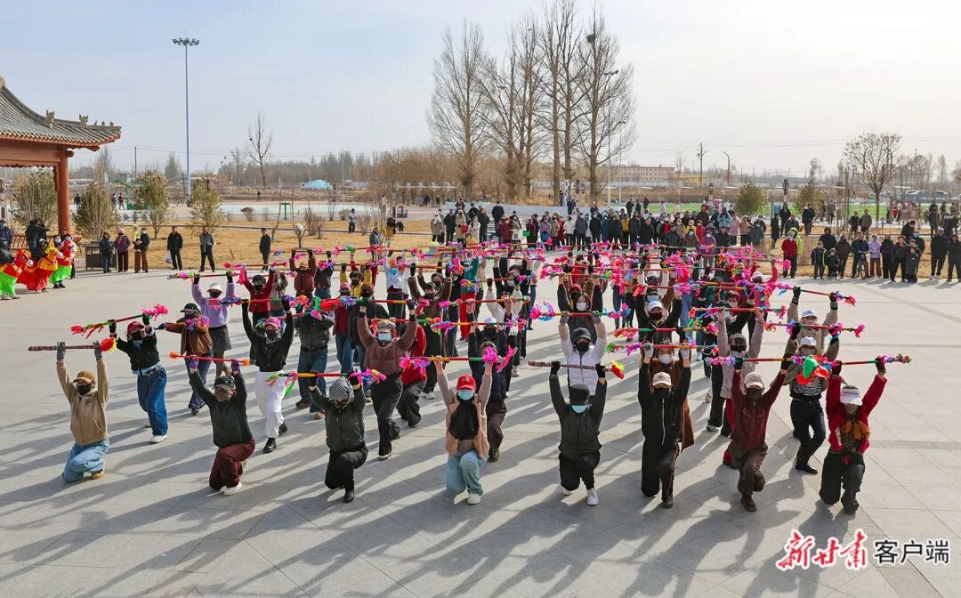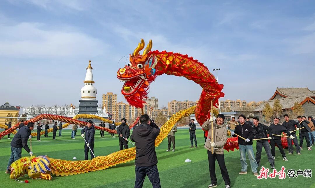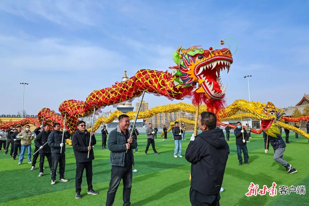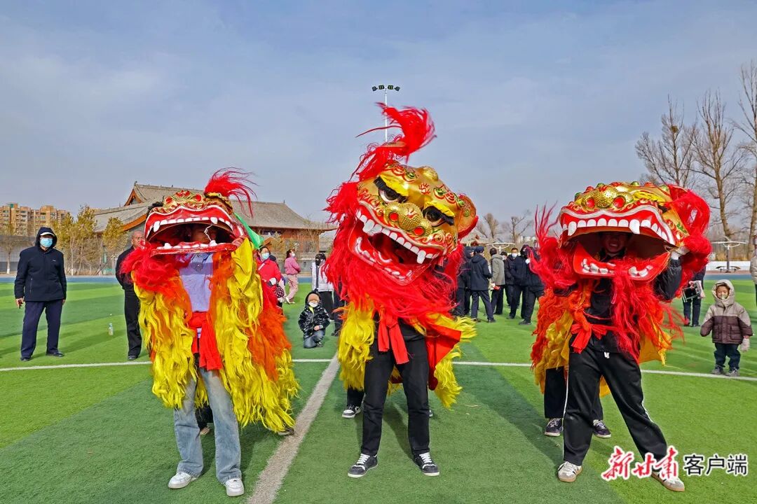 新春临近,山丹县南湖公园内鼓声阵阵、喜气洋洋,清泉镇舞狮队队员正全力投入新春文艺演出排演。