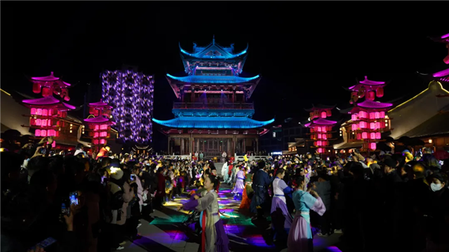 随后前往万象街。这里张灯结彩,年味十足,可逛非遗市集、品特色美食,感受现代陇南的活力与暖融的春节氛围。“非遗贺新春·寻味中国年”甘肃省非遗宣传展示主会场系列活动已在这里开幕,春节期间将上演“新春百戏”展演活动、万象街清水河非遗夜游等活动,系列活动将持续进行到3月4日。
