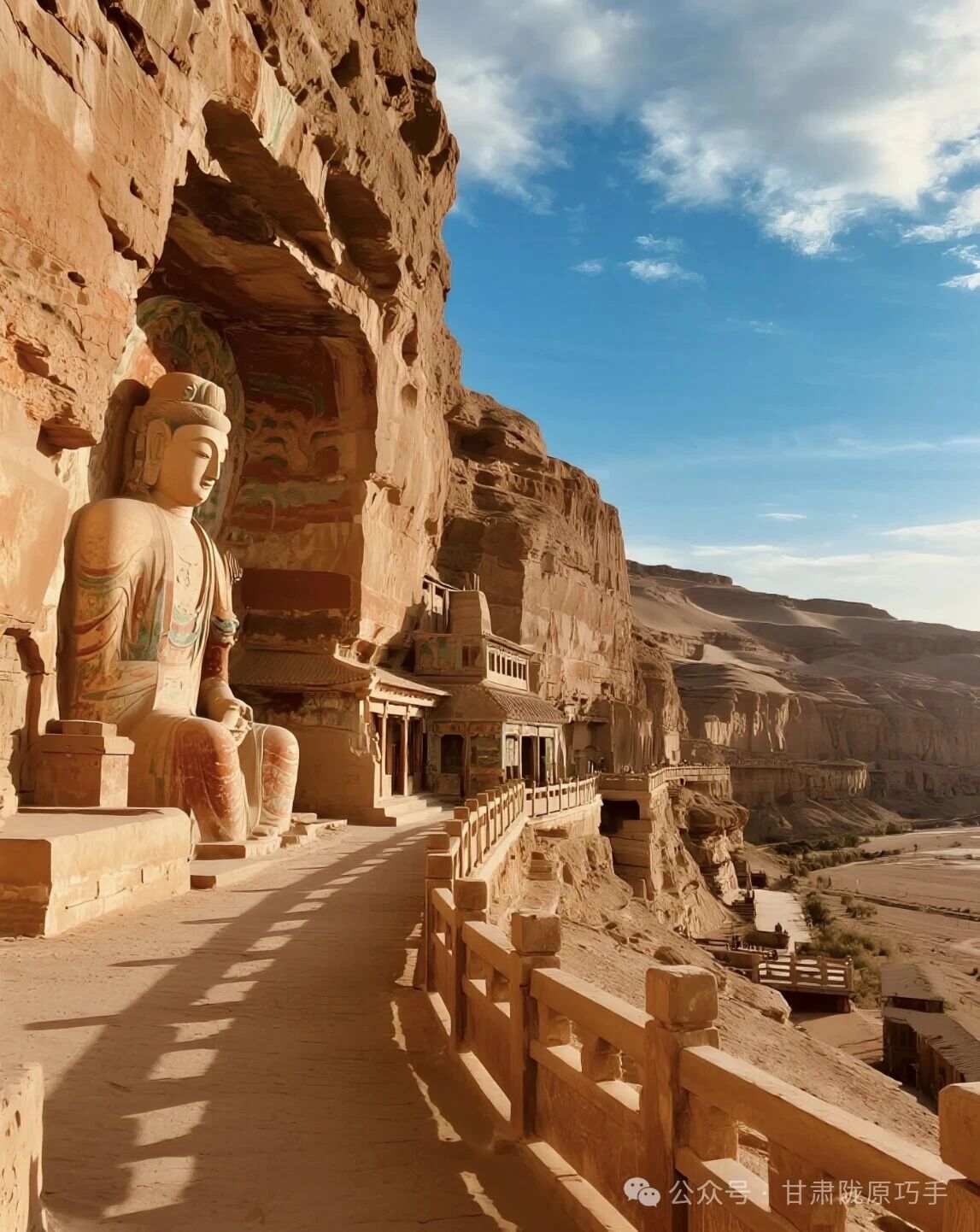 而甘肃的石窟艺术,更是冠绝全国,成为东方艺术的瑰宝。敦煌莫高窟,这座丝路艺术宝库,集建筑、彩塑、壁画于一体,千年壁画绘尽丝路繁华,万尊彩塑诉说中外交融,是人类文明的无价之宝;天水麦积山,素有“东方雕塑馆”之称,泥塑造像细腻传神,依山而建的石窟巧夺天工;永靖炳灵寺,石窟造像兼具西域与中原风格,藏着丝路文化交融的印记。一座座石窟,是历史的刻痕,更是艺术的传承,在戈壁与群山之间,静静伫立了千年。